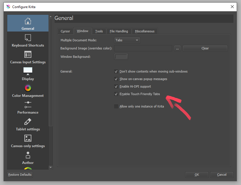 I want an option to make the document tabs slimmer. I suggest having a checkbox named “Touch-friendly tabs” or “Large tabs”, and if unchecked, it will switch to thinner tabs! Like in this picture: