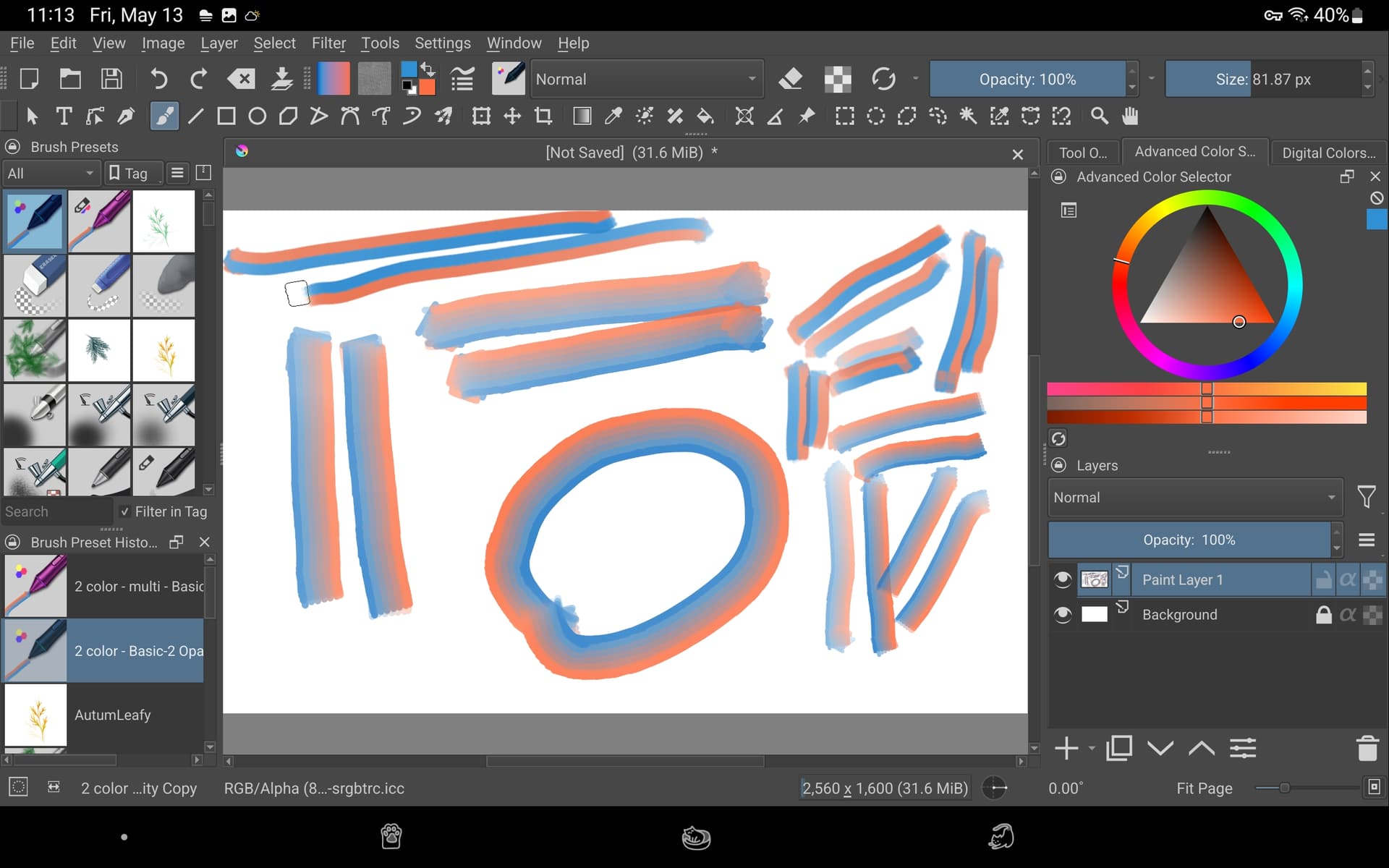 I saw in Photoshop that there are blending brushes that can be used to paint with two colors. These colors are clicked one after the other and are then painted next to each other. Does Krita have one too?