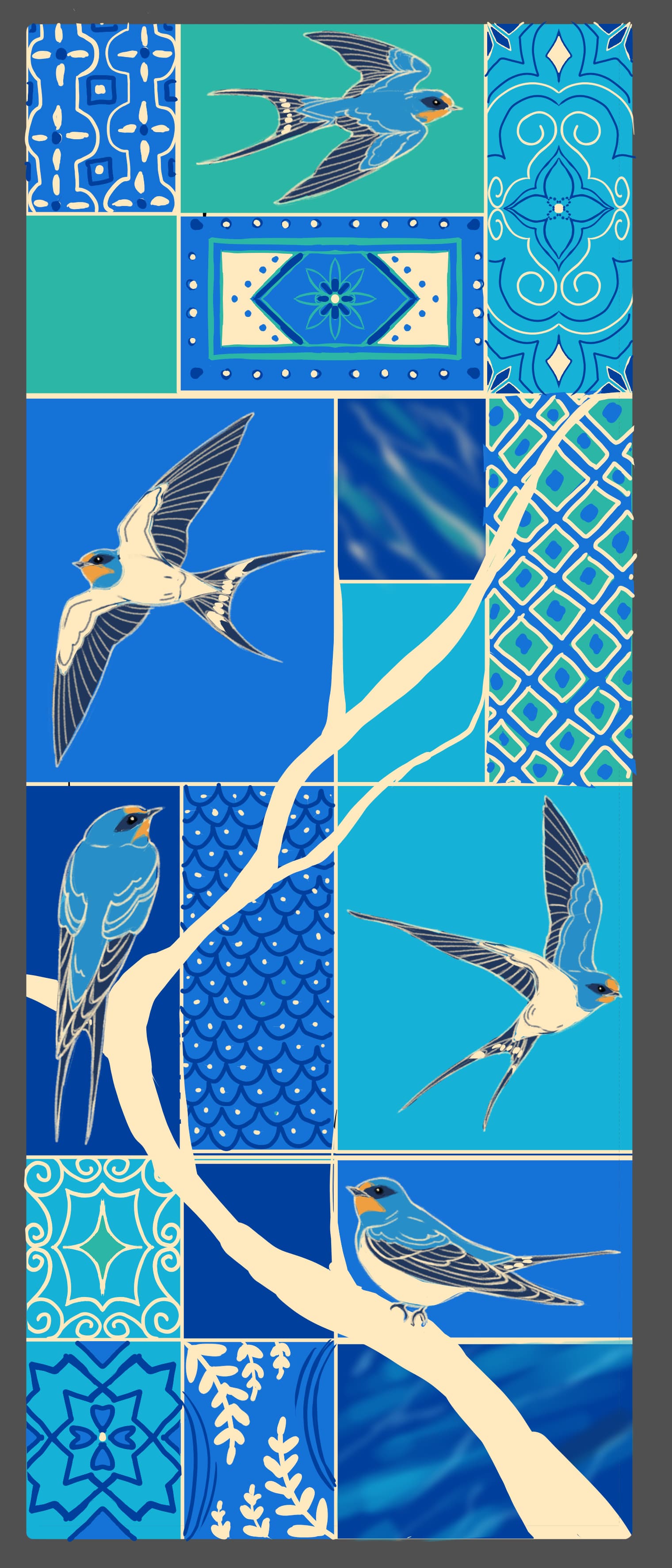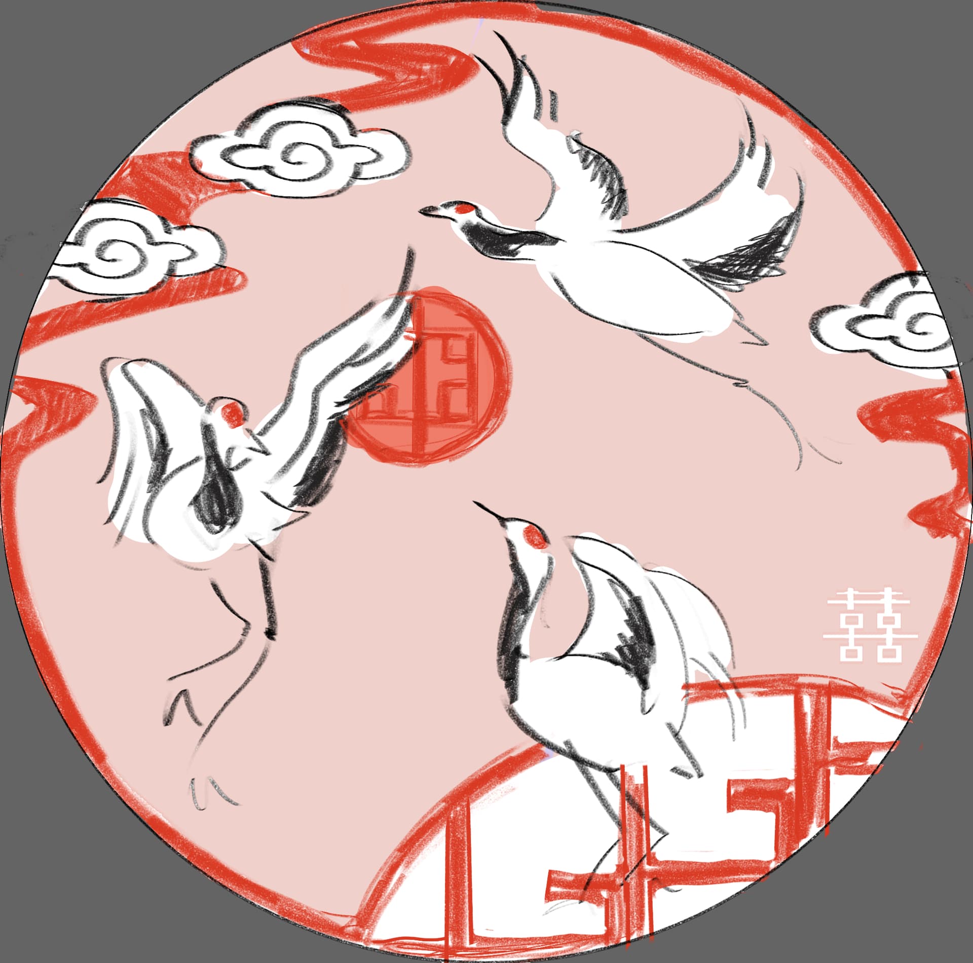 I’m fond of birds and patterns so I tried to mix them together, taking inspiration from Japanese/Chinese paintings for the 2nd picture of cranes. (◍•ᴗ•◍)