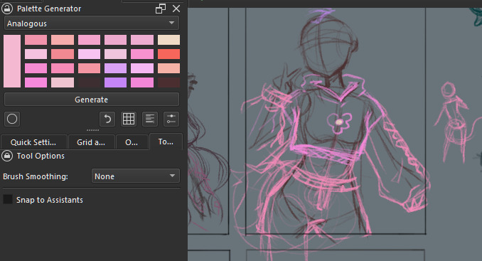PaletteGenerator is a Krita Docker that generates color scheme palette randomly or based of the selected scheme. There are 9 color scheme available togenerate from. Works best on srgb profile documents.