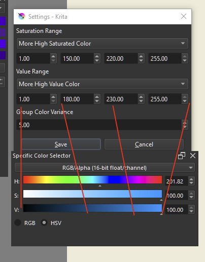 For the high saturated color you would want the generator to pick more on high value , and high saturation.
