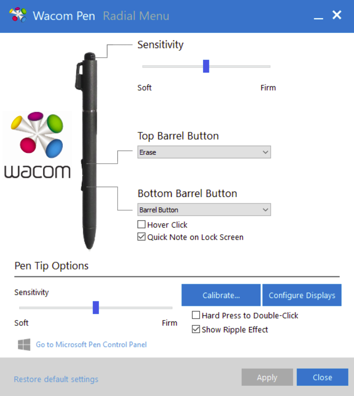 I don’t know what that means and whether you do have a settings utility for that pen or if it relies on the Windows operating system to take care of it.