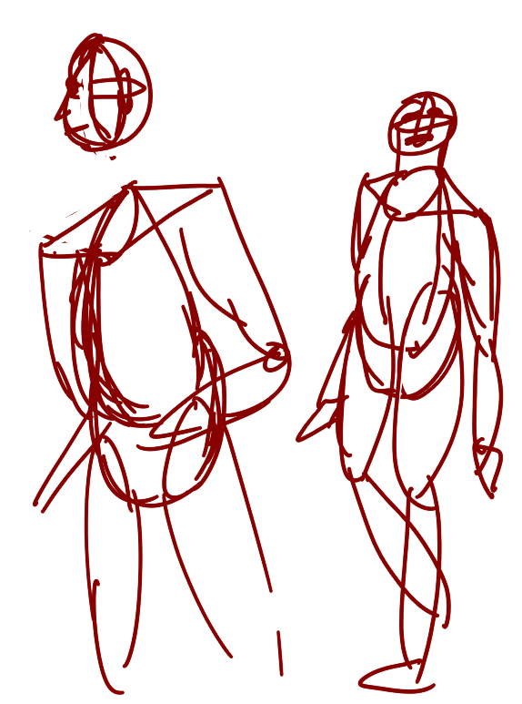 , I’m giving a rough sampling of the trial and error and practice that I jumped into as I took RodGon’s [then] brand new course on basic anatomy. Some of it was faces, but a lot of it was poses.