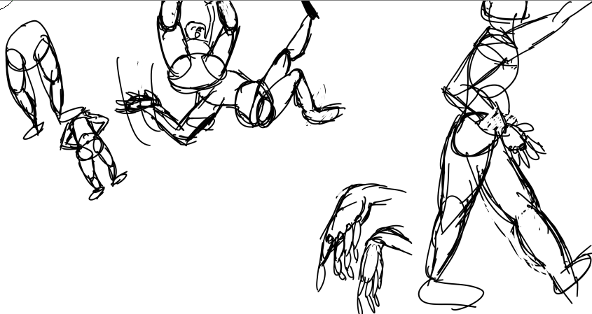 These were the first five I did, in order. I’ve included the skeletal and pre-tie down stages. While the final one is generally best, after the fact I can see in some cases where the rough sketch had the classic ‘better energy’. It’s interesting the learning that can happen just by taking the time to look back over what one’s drawn. ![]()