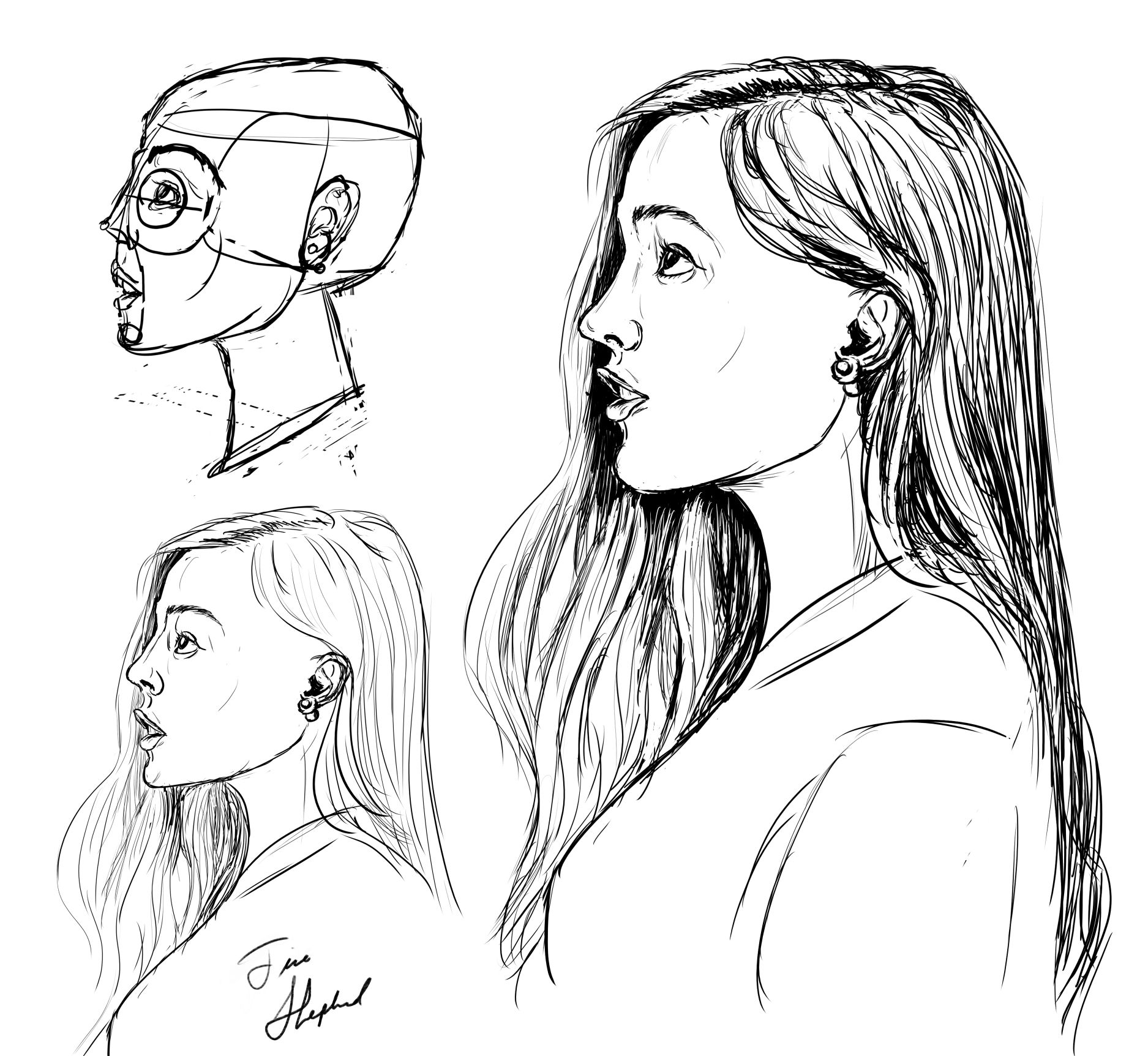 So at this point, I started fiddling with other brush options. Between that and the accumulating practice, it felt like the portraits were coming out a little easier.