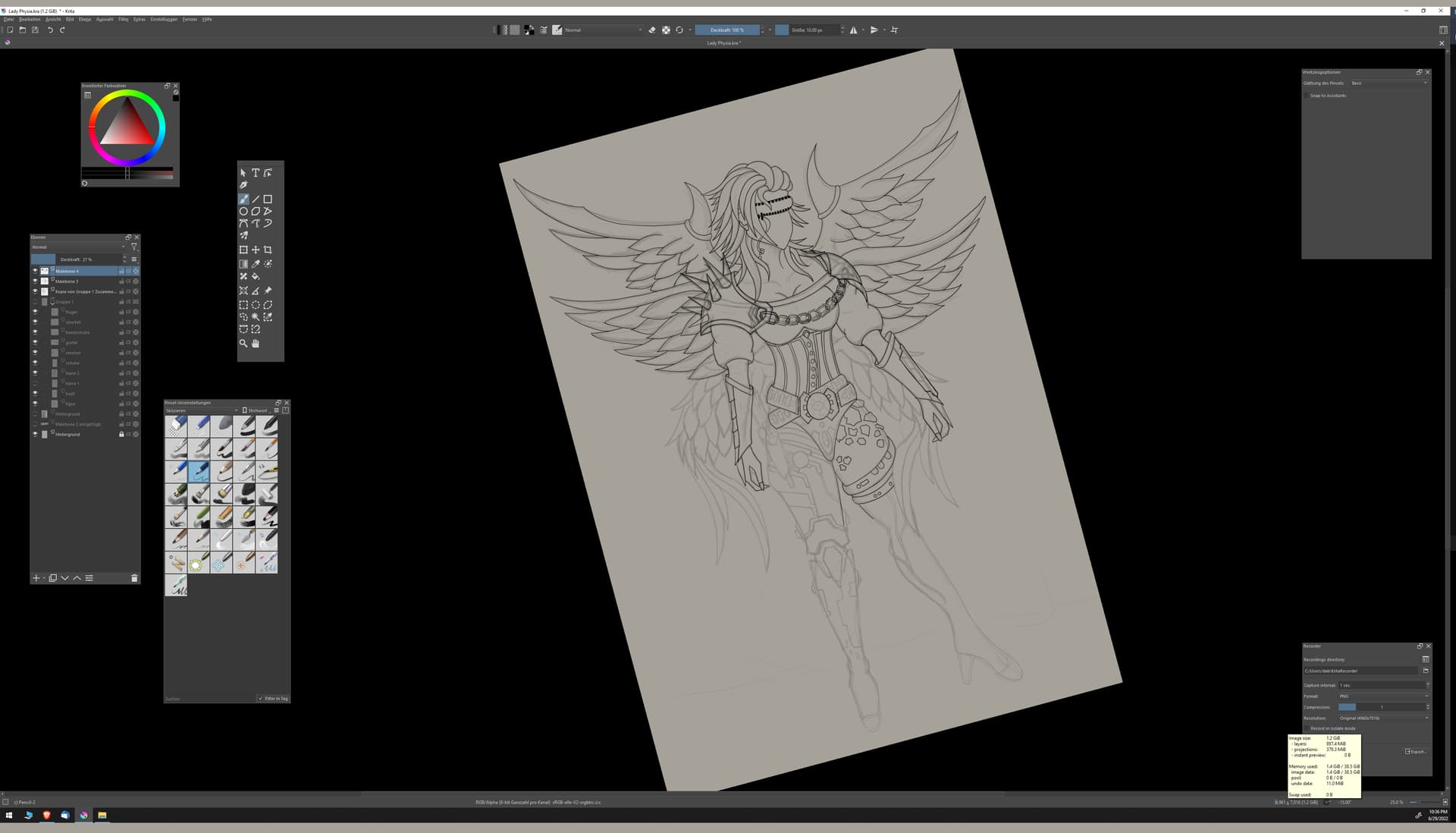 My picture is 4961 * 7016 pixels (A2) 300 PPI and with 3 levels has 1.1 GB in size… isn’t that a bit heavy?