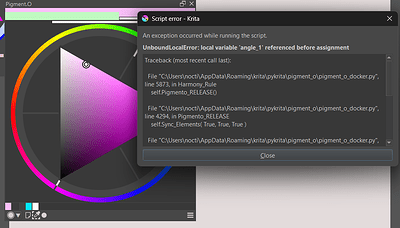 Hello, first iād like to thank you for making this plugin, iāve been using it for more than a year at this point and itās amazing. I wanted to let you know of a change thatās happened in krita 5.3 thatās affecting your plugin, iāve been talking in another post with people on the forum about this, because at first i thought it was a modified version of krita weāre using but itās something that happens with krita 5.3, itās a change about how python plugins work that will make pigment.o need some rework or update. Iām not a coder so i donāt really understand exactly whatās going behind curtains, but this is what someone who knows his stuff is saying thatās wrong in krita 5.3: