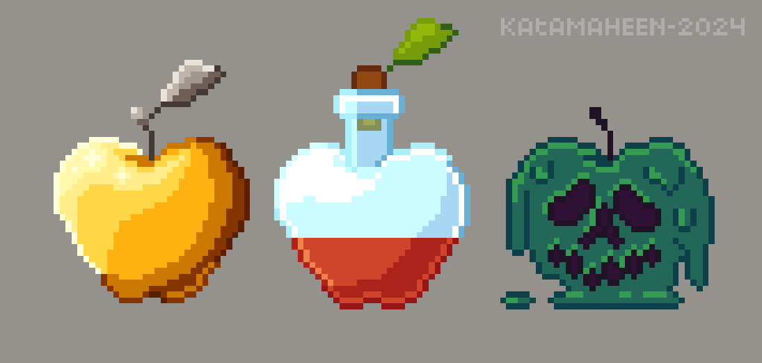 Great idea from @MangooSalade, it was fun to recreate other types of apples. The bicolored one was a bit complicated. Dunno if I did good, but I like it. After these ones, I wanted to have more fun and tried to add some magic!