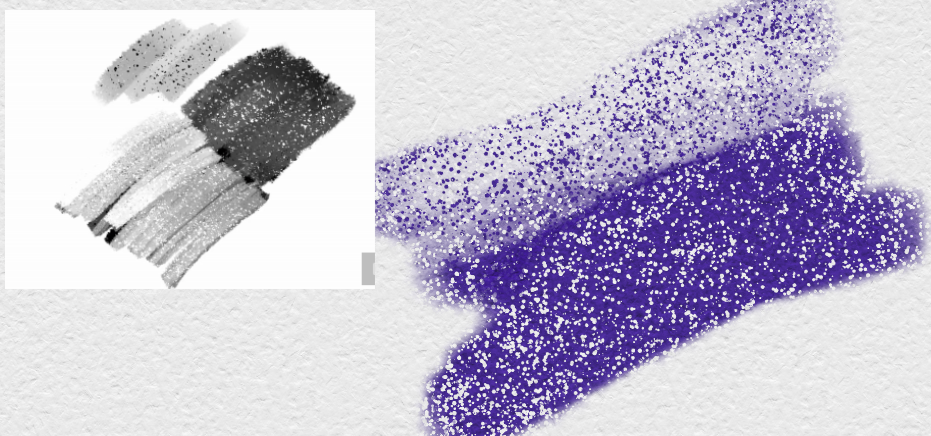 As you can see, the brush uses a static texture that doesn’t change scale when resizing the brush. Additionally, when the brush is set to Erase mode, the texture is inverted. I want to achieve that specific ‘sparkle’ look in Krita where the texture behaves inversely: the parts that are darker in the texture become the brightest (most transparent) when erasing.