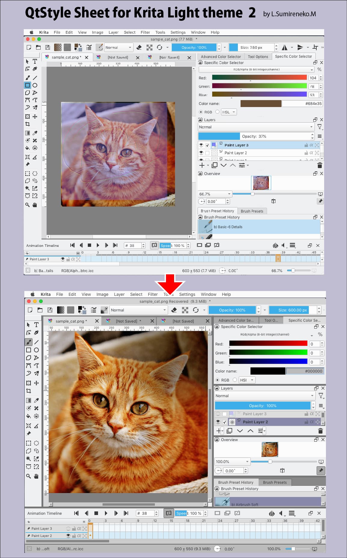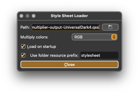 Style Sheet Loader: This plugin allows to load a Qt Style Sheet and apply it to Krita’s UI. The style sheet’s filepath can be remembered and automatically loaded on startup.