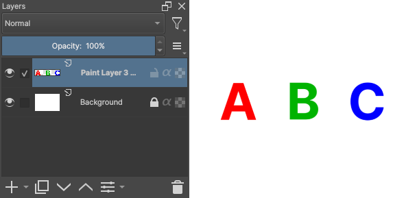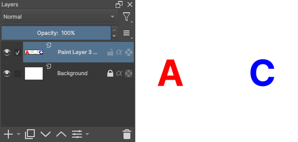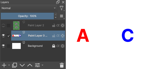 Krita can absolutely merge non-contiguous layers (that’s how I created the visual example for C), unless I’m misunderstanding you? And I also agree that it’s entirely valid to leave it up to the user to learn how Krita works and be specific. Selecting/deselecting several layers can get a bit tedious, though, and this is a case where it would be relatively easy to prevent significant accidents when the user isn’t paying attention to a large layer stack.