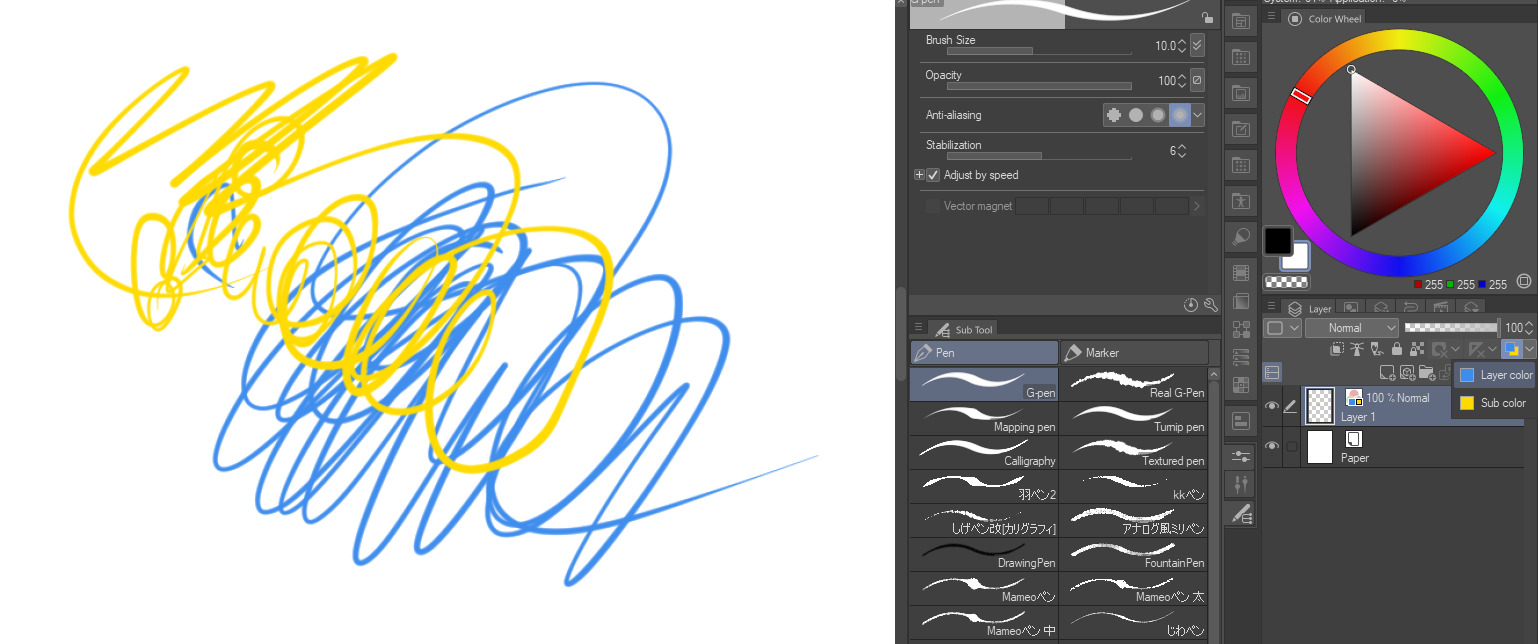 In CSP, the layer color properties function as follow :