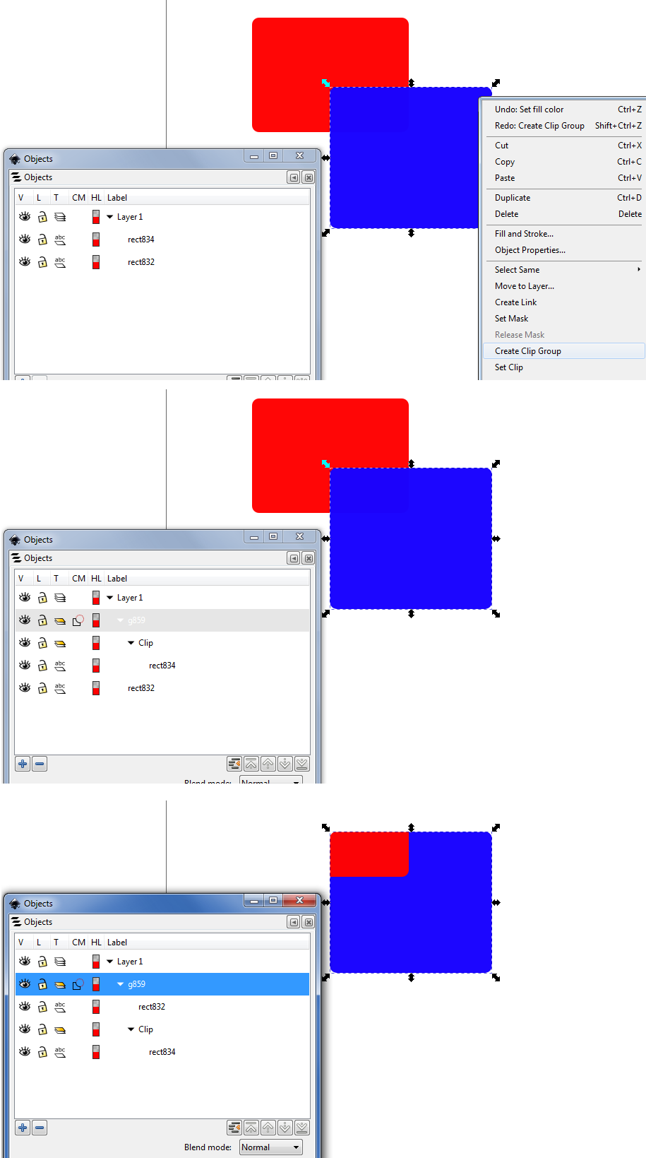 Then we want B to ve clipped to BL too. Now we get the problem I talked above: two parents of one mask (BL). …Or do we? Because if B is clipped to BL, it is also clipped to A. Which means we can make B the parent and A should be first mask/child and BL the second one (counting from the top). Again: relationship clear, rendering order intact.