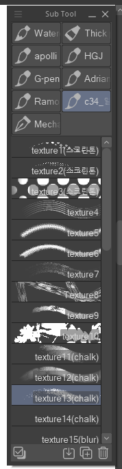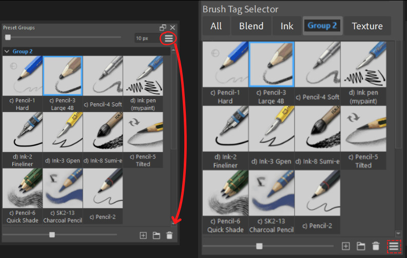 An update like this would be possible for the plugin but I’m personally not interested in implementing it because modifying Krita’s source code instead gets you closer to CSP with real stroke thumbnails like so:
