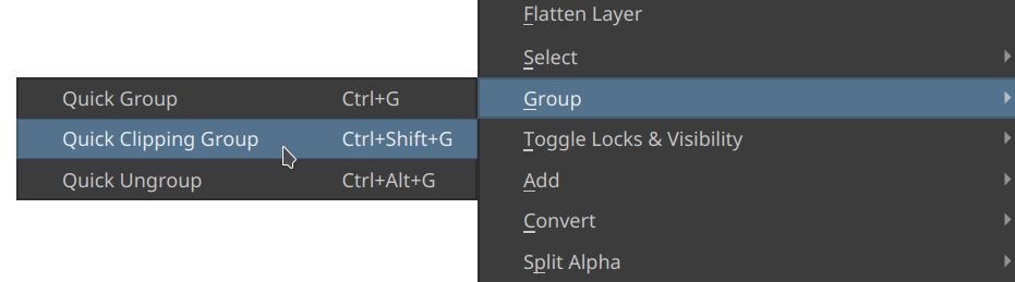 This is basically built in script for the steps you describe. It does the grouping and sets the layer mode and all that. Although I think it’s still not the same as a PS clipping mask. It’s ben more than a decade since I used photoshop so maybe I’m just too used to how Krita does things. For some reason I always found Krita’s way more intuitive.