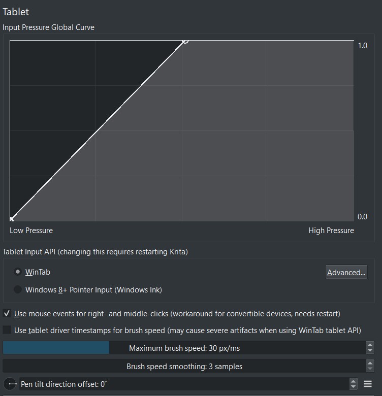 That solution isn’t ideal, since if I want to draw something on a paint layer and take advantage of, for example pen’s pressure sensitivity, I have to switch the tablet input API back to WinTab and restart Krita. And if I want to edit vectors again, I have to switch settings and restart Krita again.