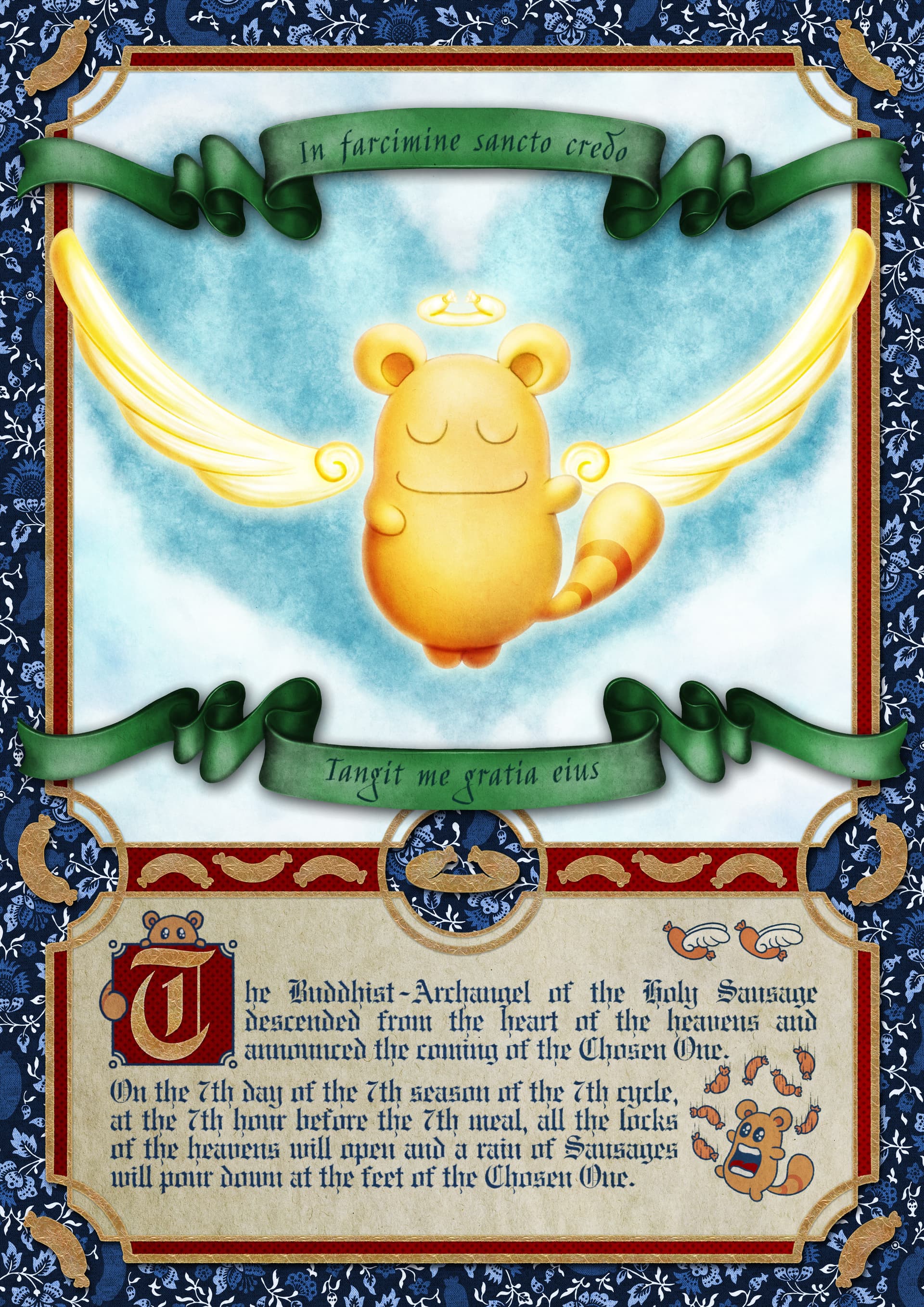The Buddhist Archangel of the Holy Sausage descended from the heart of the heavens and announced the coming of the Chosen One.