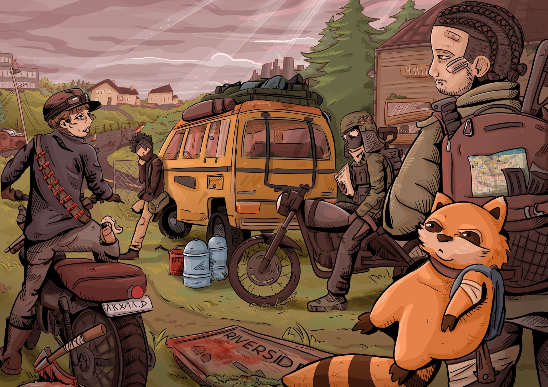 Glad to see another PZ fan here! I really like you drawing, I can see you put a lot of effort in with so much going on! (Also, are they taking a trip to Louisville with that map in the backpack? )