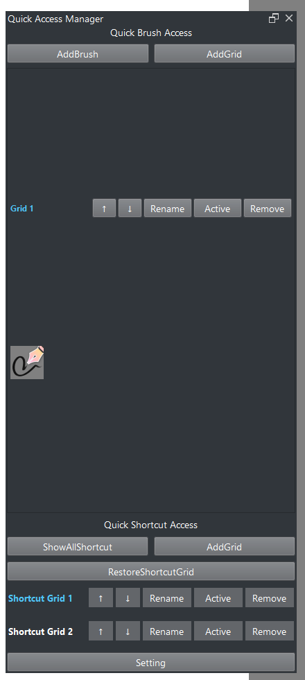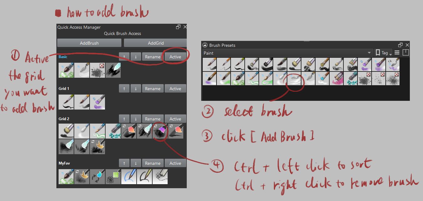 - In the “Quick Brush Access” section, activate the grid you want to add to.