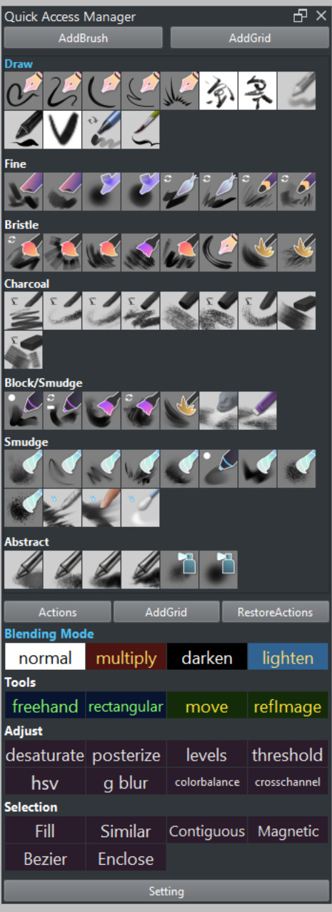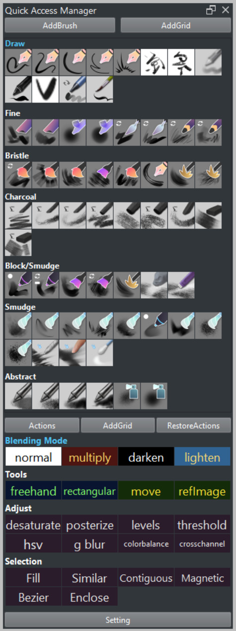 The purpose of creating this plugin was to have a function similar to the Quick Access Tool in Clip Studio Paint.
