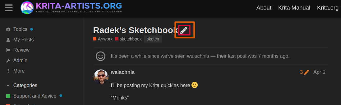 Anyone knows how to add a thumbnail to the thread? It seems I had one when I started this sketchbook and now it’s missing ![]()