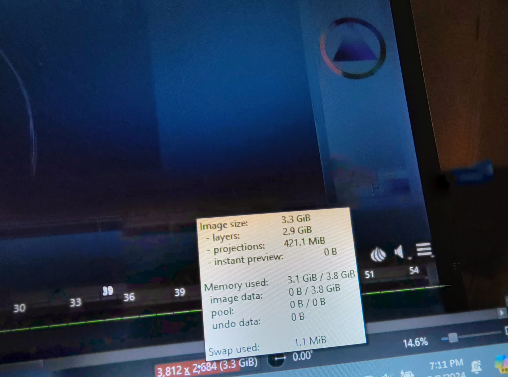 I your case Krita has already started swapping this means it’s writing to your hard drive what should be in memory and hard drives (even SSDs) are snail mail compared to RAM, you probably noticed it getting really slow. Not only does it swap it already does after just using 3.8 GB of memory this means that 4.2 GB are already taken by the operating system. Honestly I don’t even know why devices with 8 or less GB RAM get even sold with Windows nowadays.