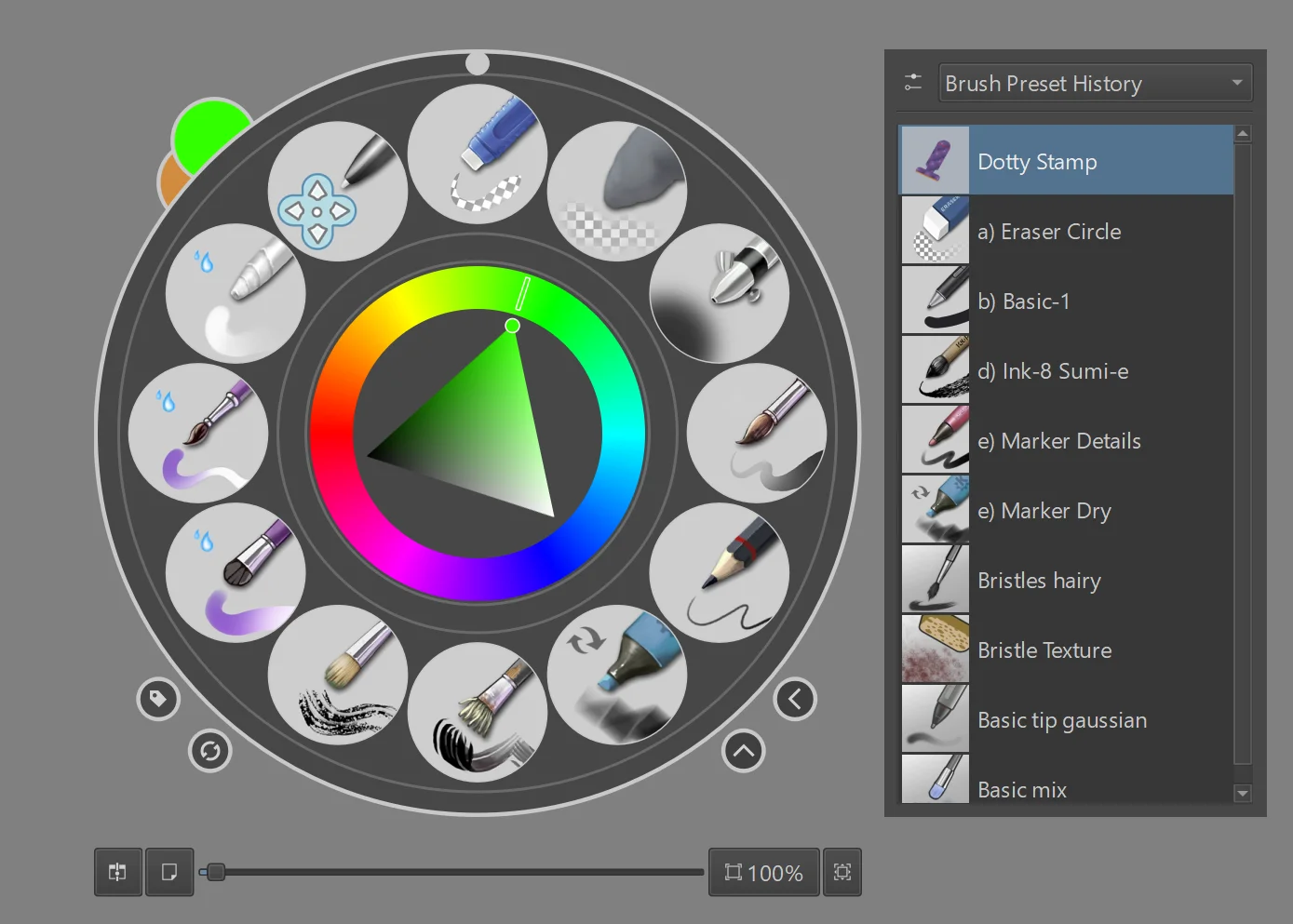 Hi! Sorry if this is a dumb question. Is there some way to show in the circular palette that is invoked with the right mouse click the brush preset history?