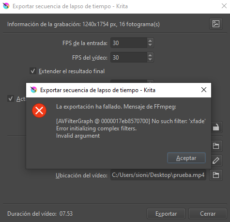 I’ve try to export the recording and this error appear:
