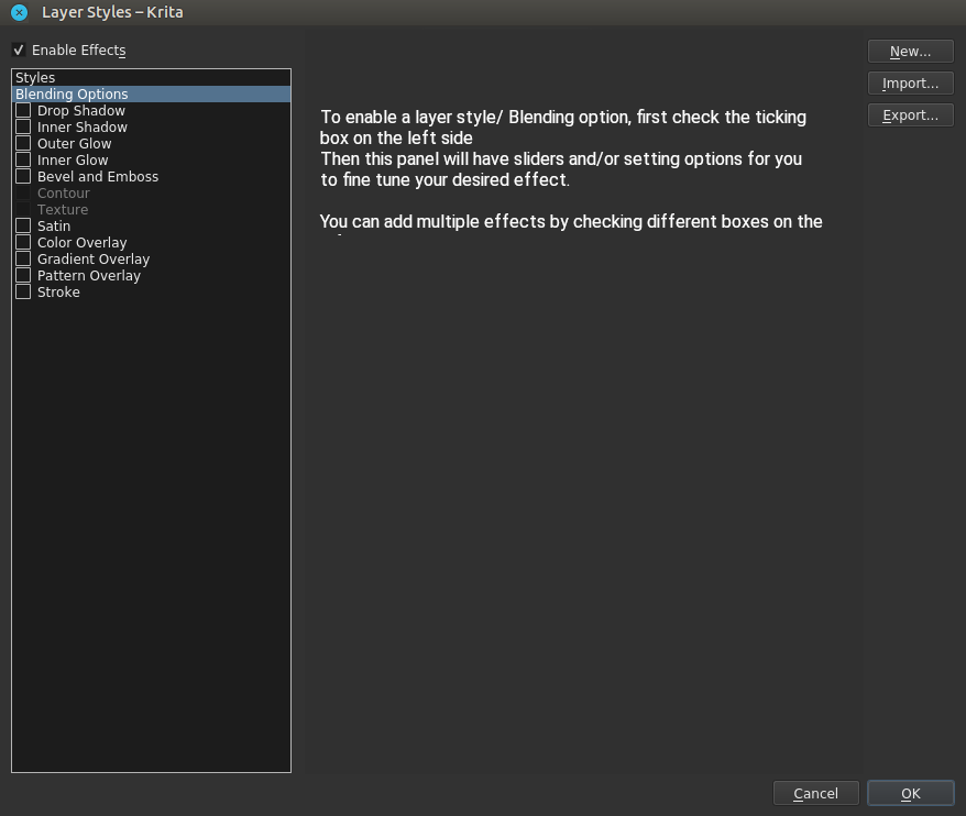 If removing this “tab” takes more time or code than expected, a replacement of the “mock-up settings” by something explaining the purpose or how to use the Layer Styles on the left panel would be great instead, a bit like the mock-up below (and may be, you can put in “comment” the already made code, if any).