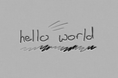 This uses an emboss layer style on the layer with the drawing. The emboss has a hard edge so I use a blur layer on it. This also blurs the drawing itself, so I set the drawing layer mode to erase, place these layers in a group to isolate the blur/erase, and make a clone of the drawing layer outside of the group with no style and normal blend mode.