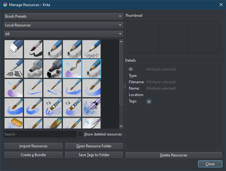 Here to ask some feedback about Resource Manager: add a placeholder panel for no/multiple selection (!1752) · Merge requests · Graphics / Krita · GitLab to try and improve the UX when selecting resources. I’ve added a placeholder panel for none and multiple selection, trying to aim for a cleaner and more accessible view.