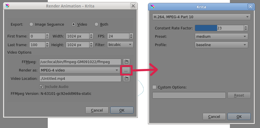 For rendering to .mp4, there ar more options that are shown by clicking the icon to the right of the Render as: drop down. These are what I usually use: