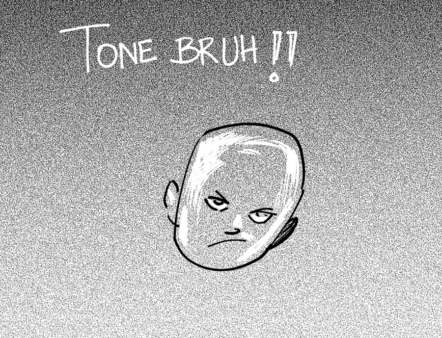 As you can see, the tone pixels are completely black. Using a soft brush, supposing that the usual painting principles applies, the alpha should still allow a dark gray to white dotted colors to be visible in theory. But because the opacity is reflected in the application of the tone :