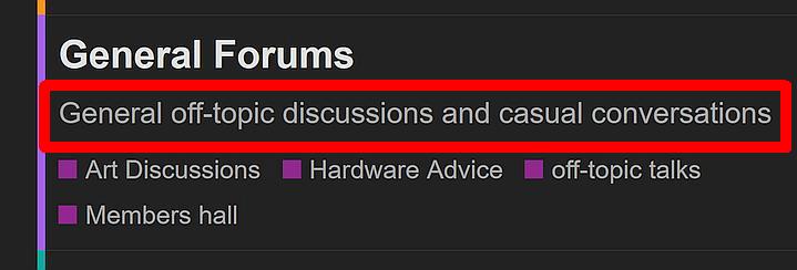 Each main category has a description for what kind of topics it is meant, the one you had chosen was General Forums and its dedication is described as “General off-topic discussions and casual conversations”,