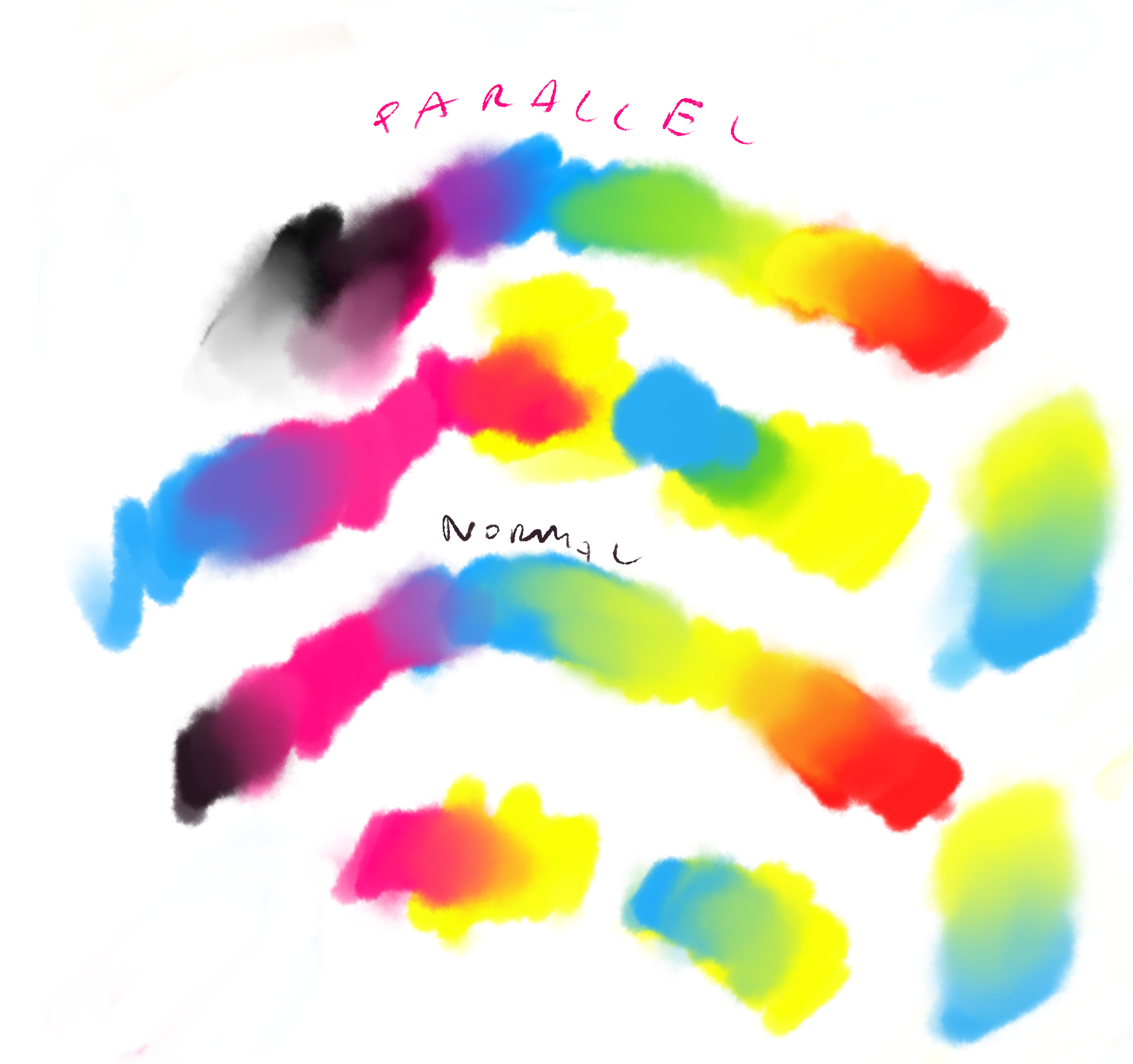 Still about color blending, I was checking different modes and looks like with Paraller blending we can have bit more satisfying painting. It finally gives yellow + blue = green (more green when you start painting blue on yellow), and also mix of magenta and yellow and blue and magenta gives bit more intensive colors. I don’t understand why but it works.