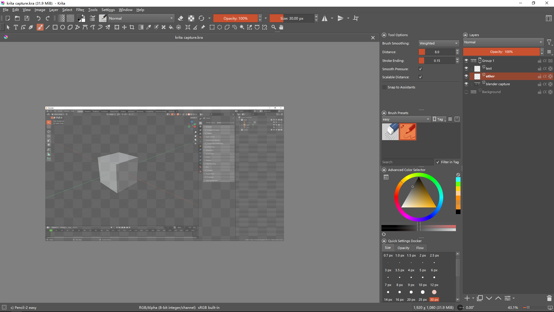 If you’re doing blender surface artwork using krita then there are some topics that would interest you and you may be able to give advice about that subject.