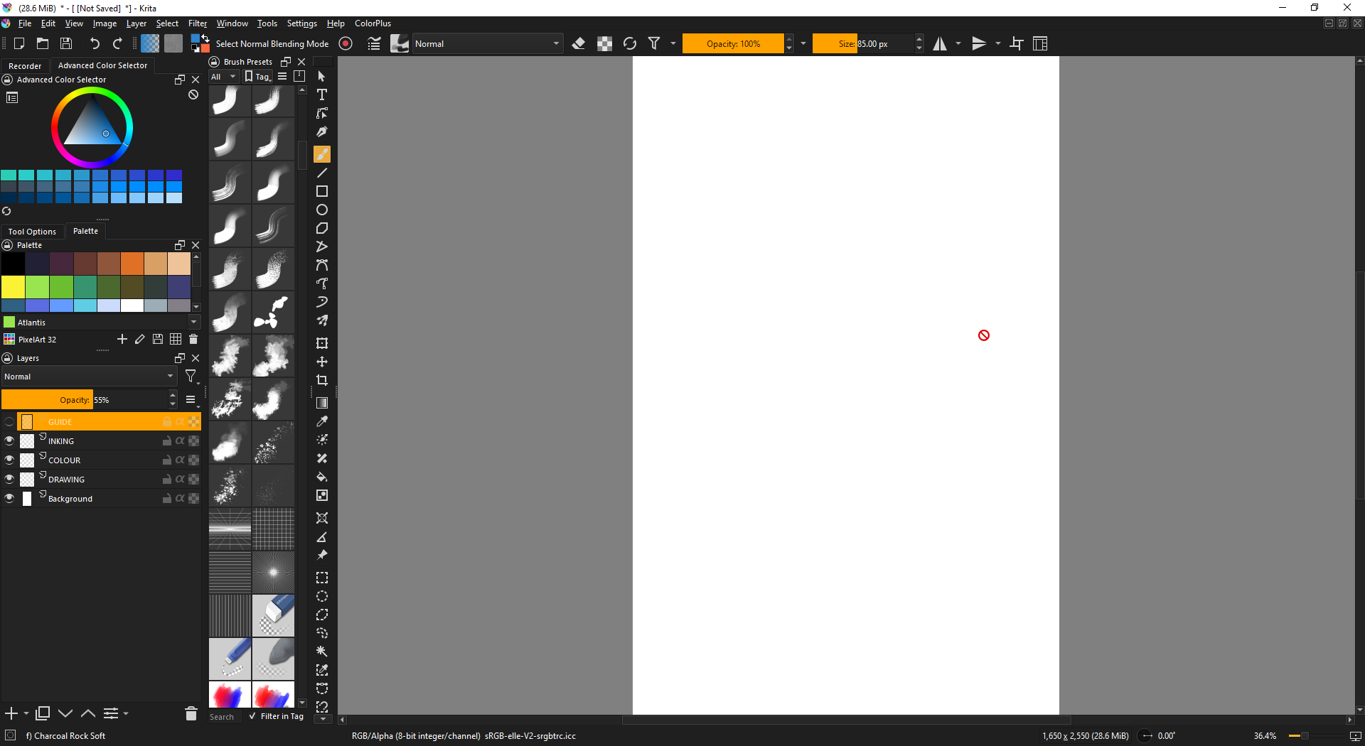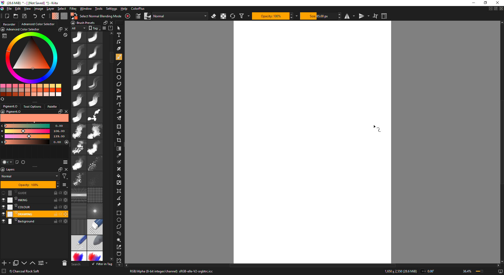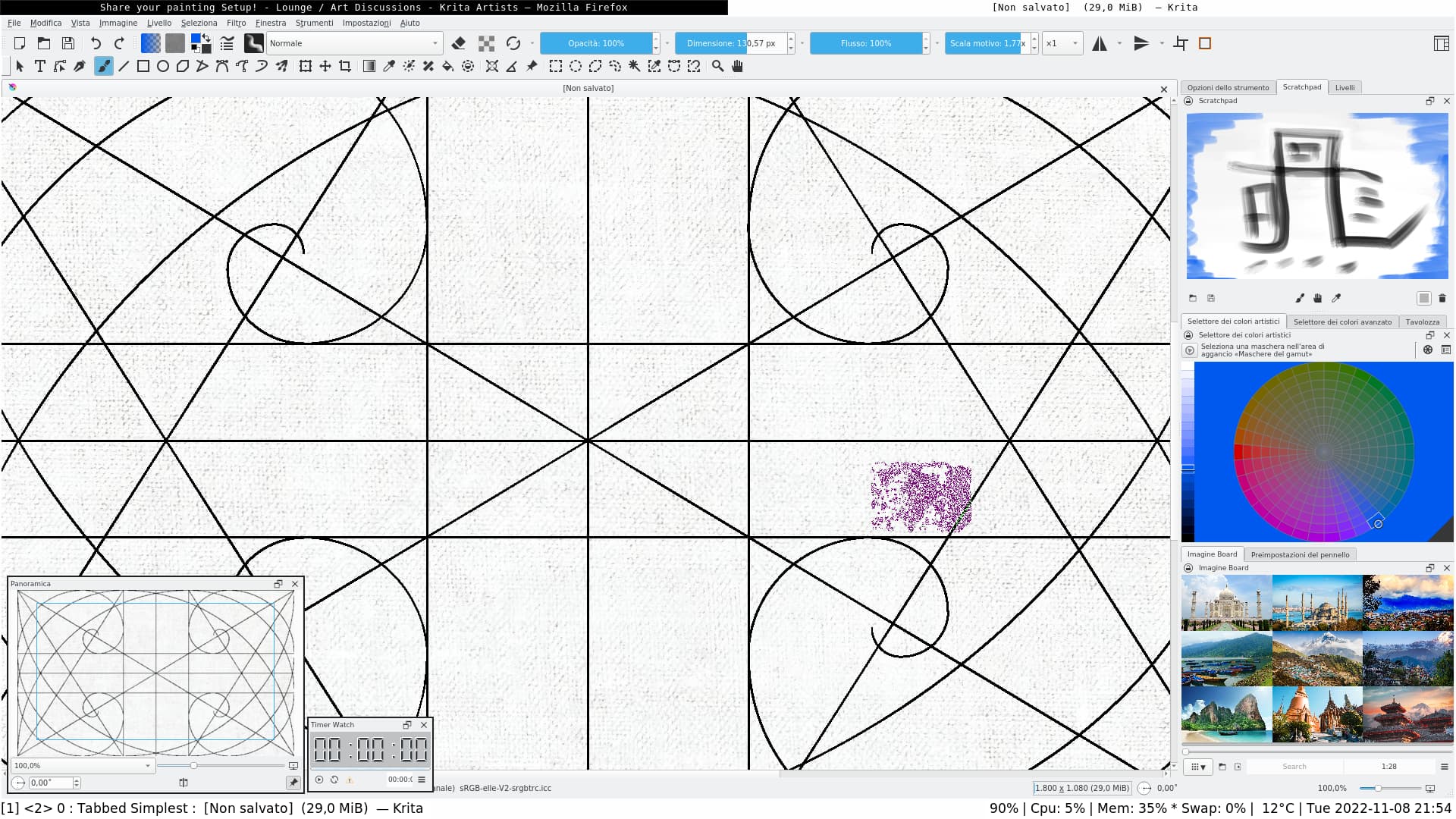 Theme is ClipStudio MidGrey from Zoldyako's Themes for Krita v2. I like it because it’s not too dark, not too light, background is completely neutral at 50, and thus doesn’t mess with value/color perception. Of course, it also matches what I use in CSP