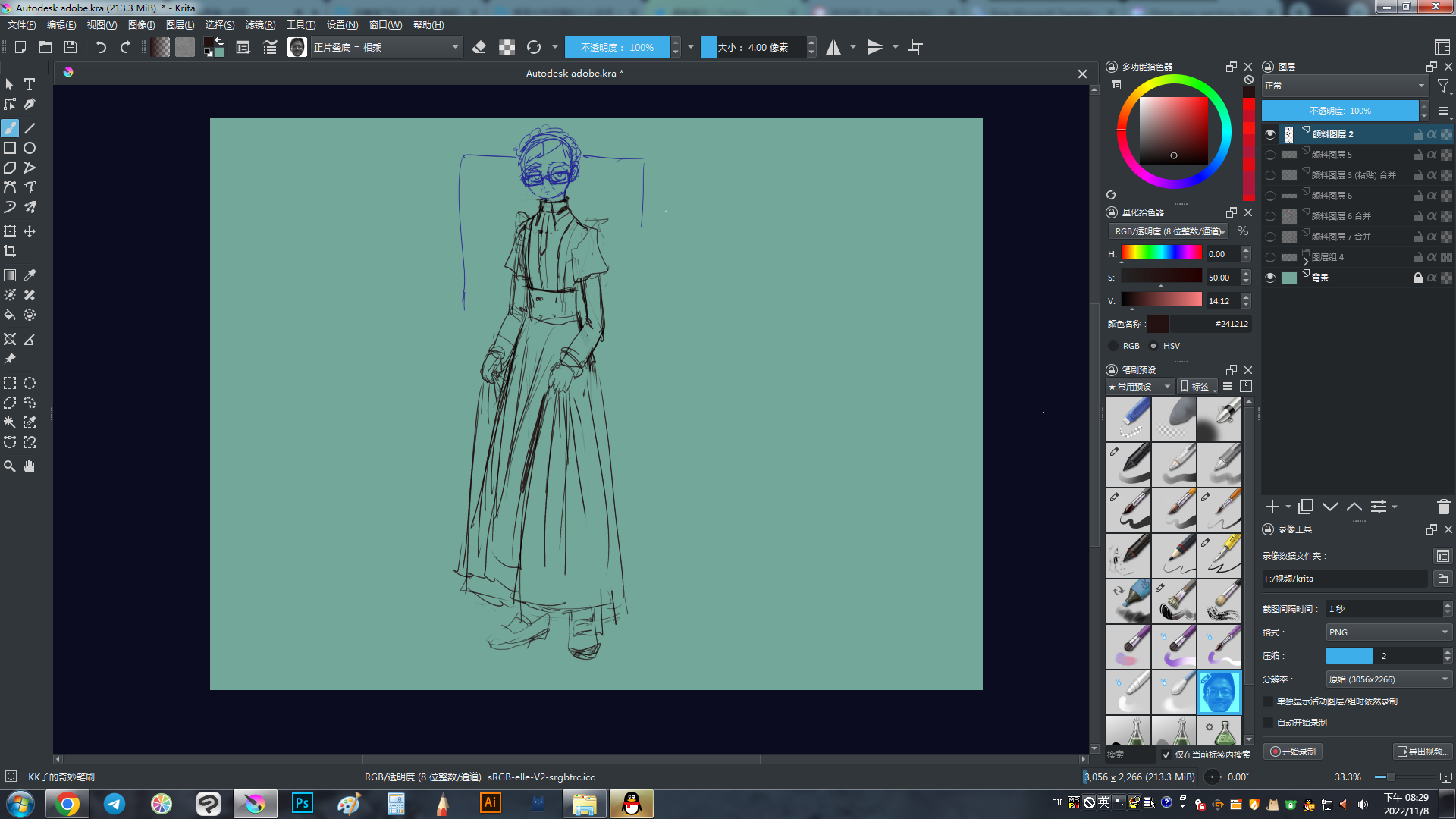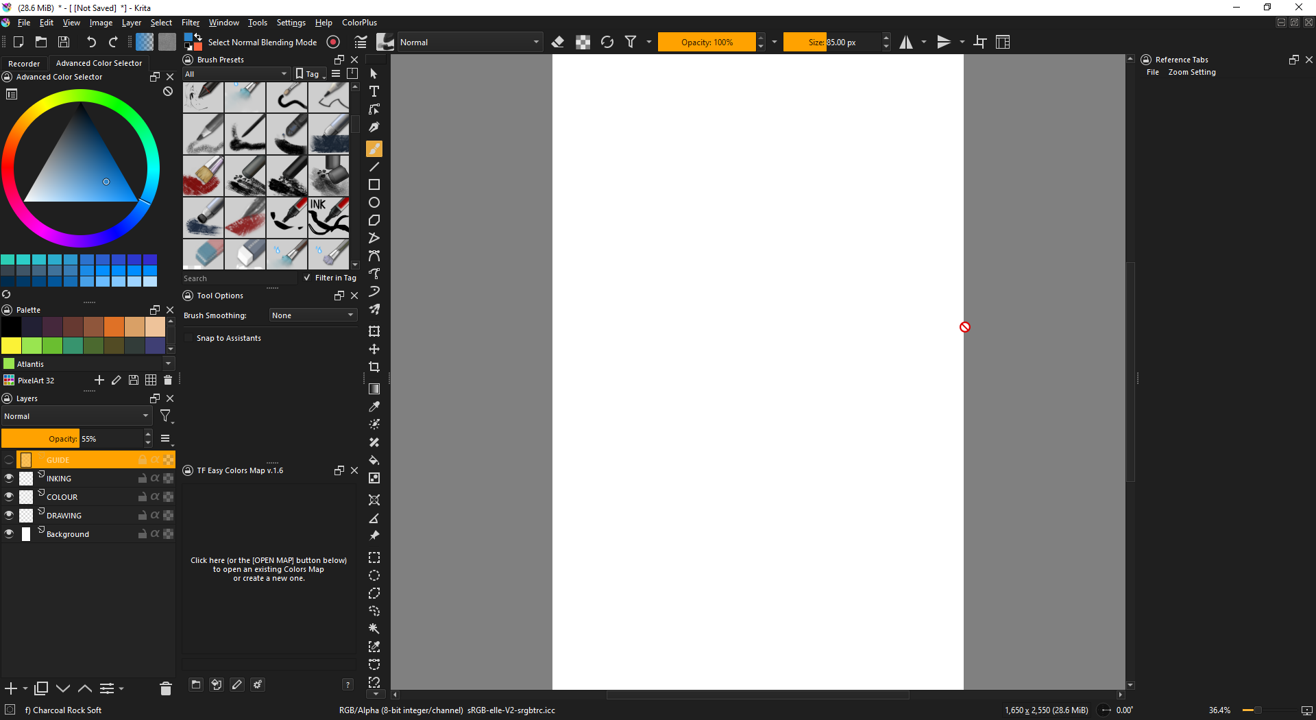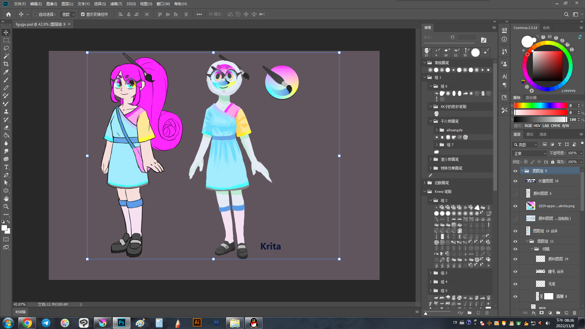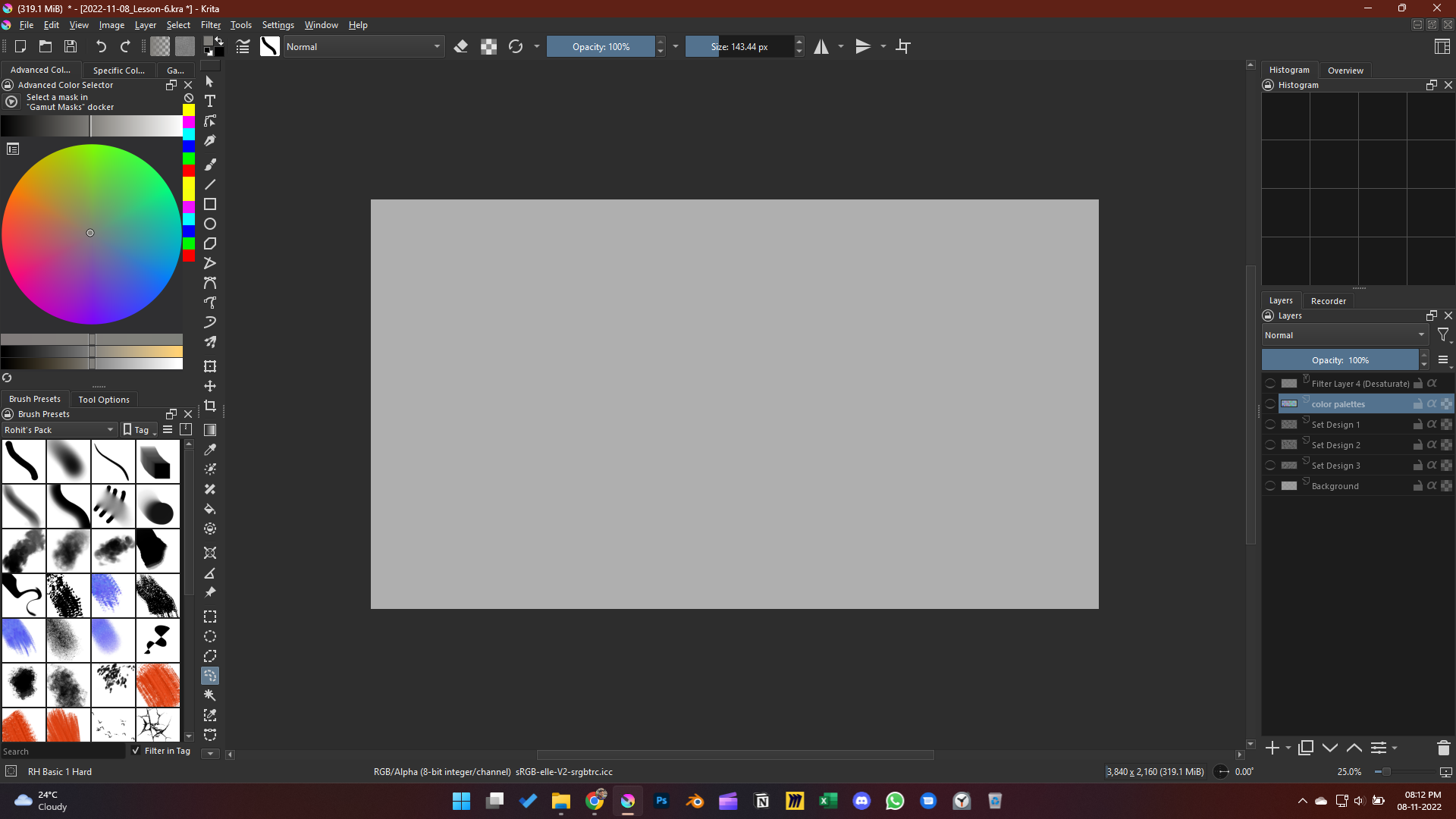 Theme is ClipStudio MidGrey from Zoldyako's Themes for Krita v2. I like it because it’s not too dark, not too light, background is completely neutral at 50, and thus doesn’t mess with value/color perception. Of course, it also matches what I use in CSP