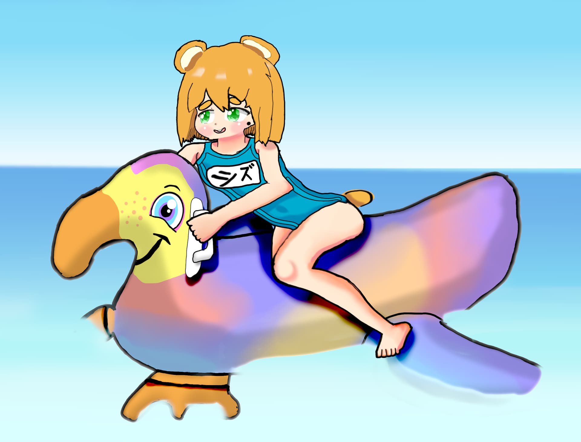 Recently she got a dodo floatie compliments duck floatie that she have previous art also her tail.