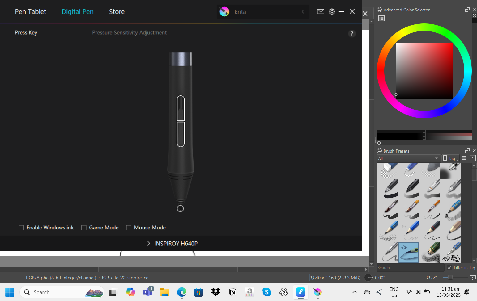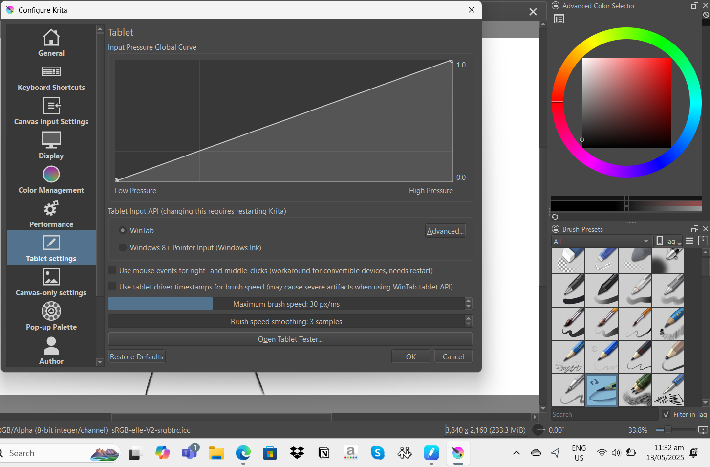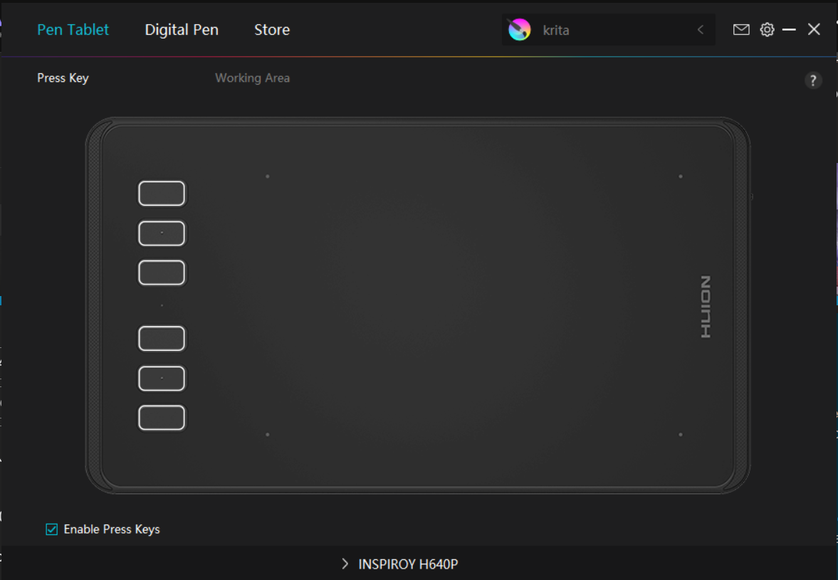 The important thing with WinTab and Windows Ink is that these have to match another on Krita and tablet. When you select to use WinTab in Krita, you must disable the use of Windows Ink on the tab “Digital Pen” in your driver-application in the lower left corner, and if you want to use Windows Ink it has to be enabled in Krita and your driver as well, so the “trick” from before but vice versa.