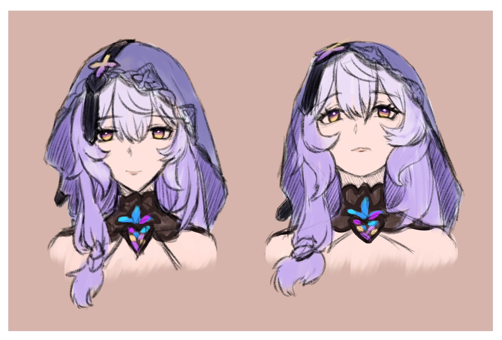 Also these two pieces are not the best practice, honestly. My current limitation – still, after a year! – is character drawing, especially the face. I’m rather confident with colors and can get decent results, but my work is held back by mediocre head balance and various mistakes, so I want to fix that. It would be more efficient to not push a drawing that far, to shading and details, and instead draw a larger number of simpler sketches, to get enough reps in. However, once in a while I need to draw something beautiful to convince myself that I still can.