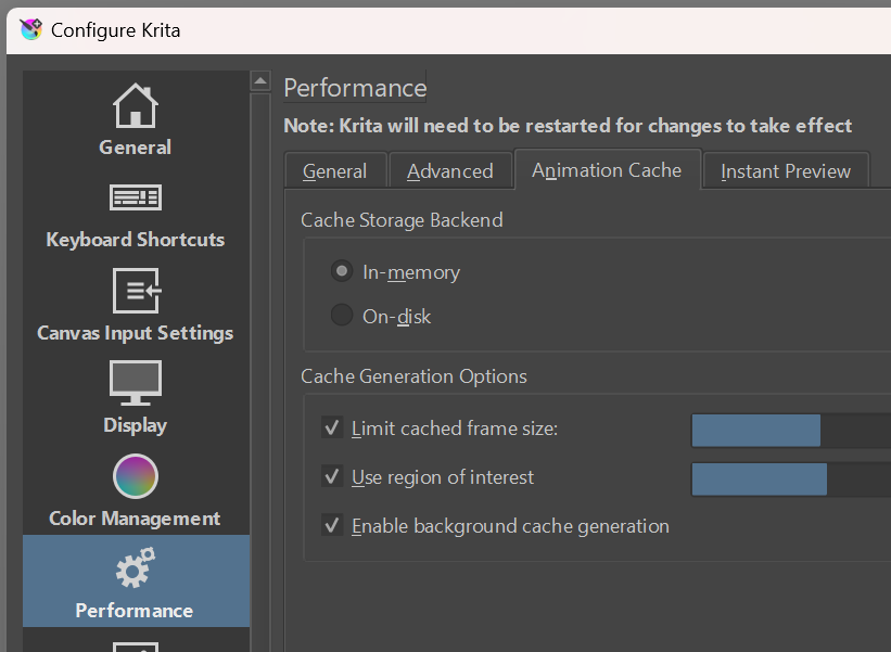 For reference, my Animation Cache settings are (should be default, I hadn’t changed them):