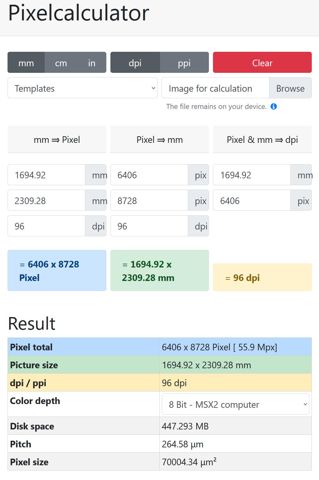 If not, and it is “only” supposed to hang in a living room, in the standard size of 70cm x 50cm or even 1m x 70cm, then no one will stand in front of it and look at the image transitions with a magnifying glass, have you calculated what real dimensions your image will have.
