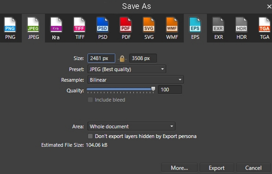 - In Save As .Kra File Format Always in Top of the list and Then Serial by Most popular file formats