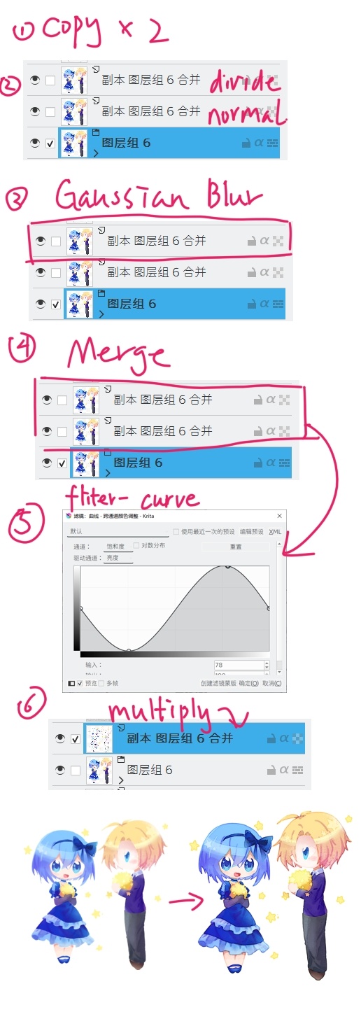 Yes, they are all drawn by krita~(I think posting pictures by other softwares in KRITA fourm is a little strange)