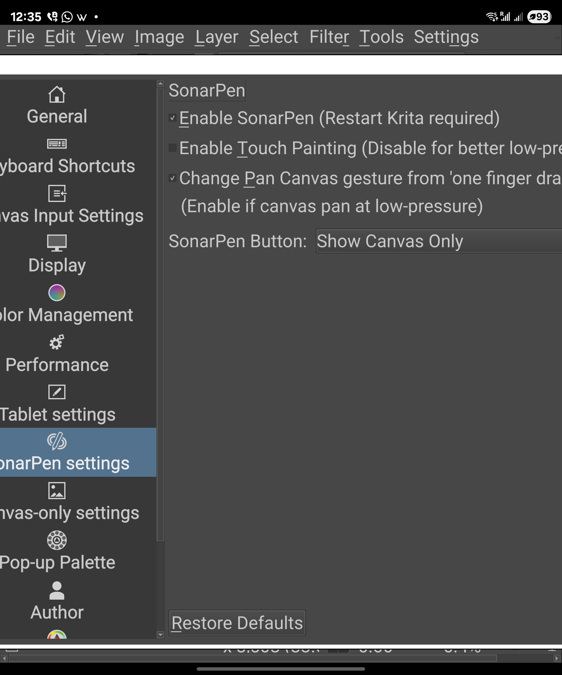 Let me know if this help and I will update my previous post to help other to setup their Krita app to work wtih the SonarPen.