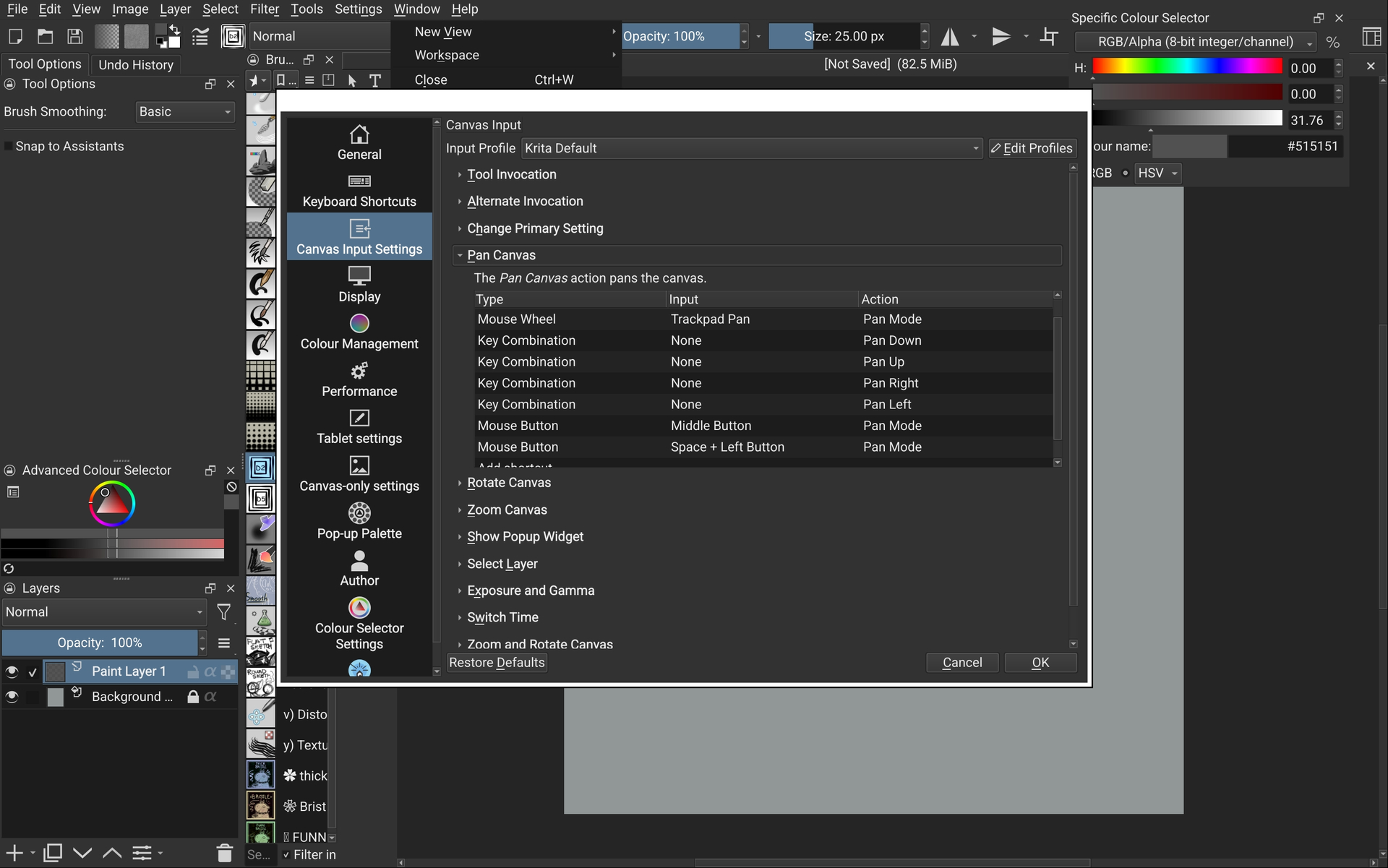 It’s still strange to me because this has only recently been a problem, despite never changing my setup or the way I use Krita with my bluetooth keyboard. In fact, I used to have a different issue where typing to change the brush size/layer label/opacity would cause Krita to stop registering any tool and navigational shortcuts, requiring a restart of Krita to fix. Kind of seems reversed now, having to focus a text field in order to get it to register shortcuts.