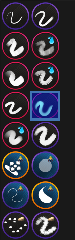 Since we’re already working on Qt6, Krita 6 will come somewhat soon, maybe we could replace the default bundle. We need a few more brushes anyway: some wet RGBA ones, some with the new smudging algorithm, I would add maybe one or two more clone brushes because I doubt many people even check the options for that brush which drastically change the behaviour. But the new icons need to be descriptive and the design must be consistent. Note that the color of the stroke has a meaning. It would be easiest to just flatten the current design, I guess.