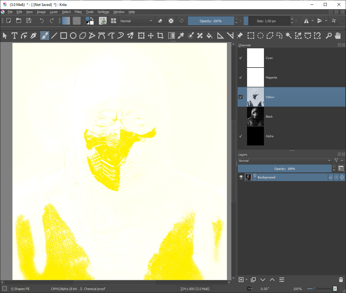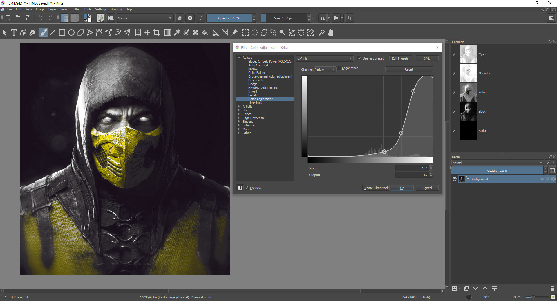 We need two layers with the original image now, one for the yellows, one for the rest. We drag the transparency mask we just created into the âyellowsâ layer, and an inverted version into the ânot yellows layerâ: