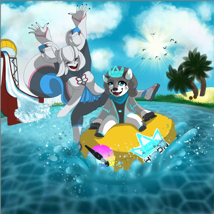 Kiki and Leon went to the water park and had tons of fun on the waterslide! The logos are on the tube!